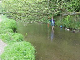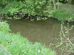 the changes in river characteristics with distance downstream. Depth and width of channel were measured at 24 gauging points taken at regular intervals downstream. Can you see any downstream changes in river characteristics from the photographs? Look for meandering, increasing width and depth of channel. The photographs begin upstream at guaging point 1. At point 12 a tributary joins the main stream. |
